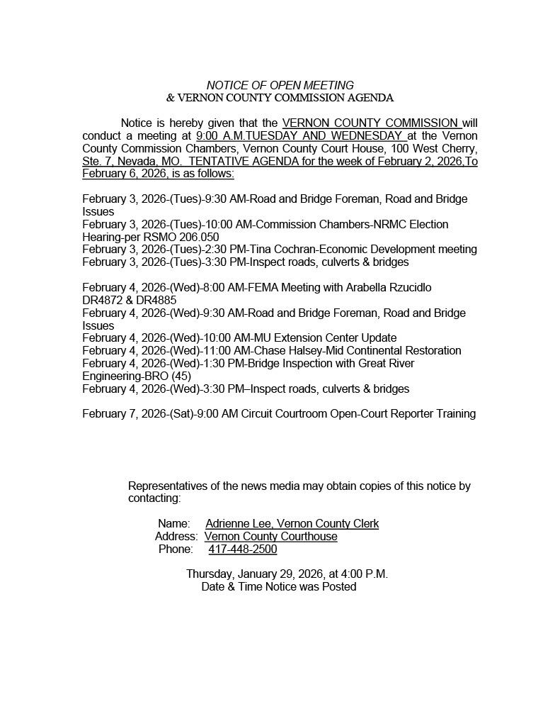 Vernon County is an equal opportunity employer, dedicated to a policy of non-discrimination in employment on an basis including race, color, age, sex, religion, handicap or national origin.